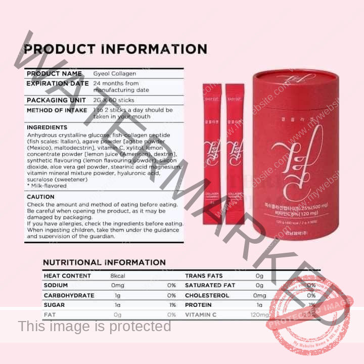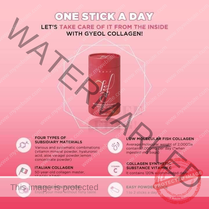 Gyeol Collagen is made with low molecular weight fish collagen with a molecular weight of less than 3,000Da extracted from fish scales through an enzymatic hydrolyzation process.