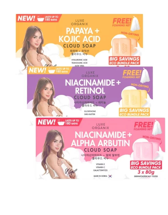 LUXE ORGANIX Niacinamide + Alpha Arbutin Cloud Soap 3 x 80g (Eco Bundle Pack)