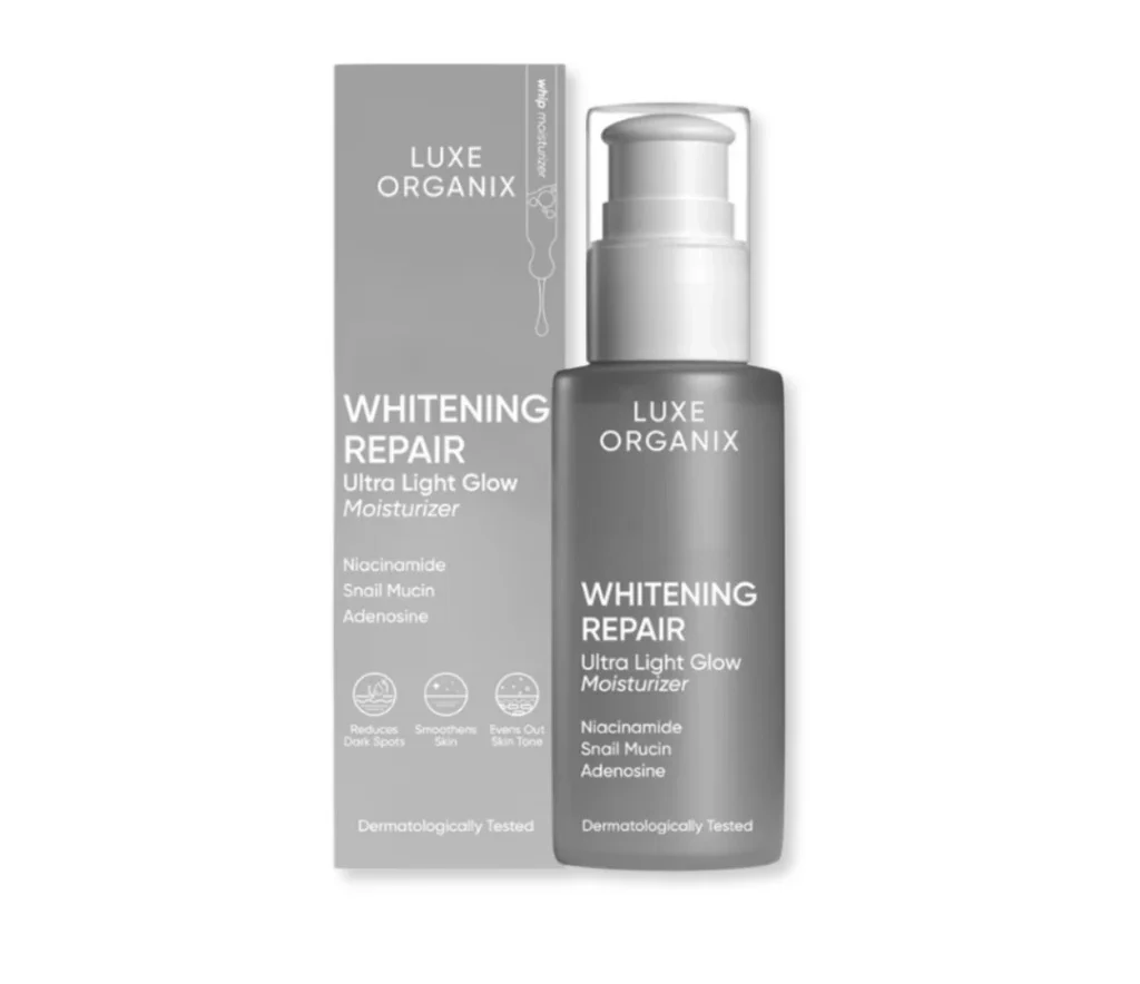 Luxe Organix Whitening Repair Ultra light Glow Moisturizer is a lightweight moisturizer packed with potent ingredients that helps lighten hyperpigmentation. Its lightweight finish makes it ideal for day and night use. Niacinamide and Snail Secretion Filtrate, it helps fade dark spots and deeply nourished the skin.