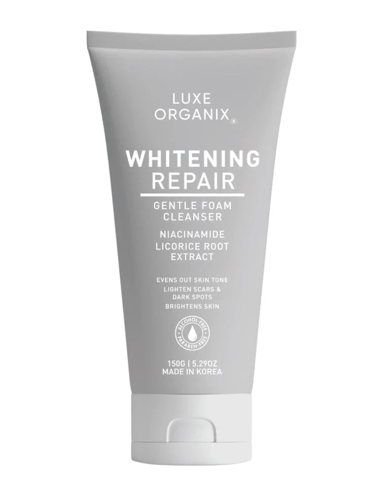 “Luxe Organix Whitening Repair Ultra light Glow Foam Cleanser is made with Niacinamide and Licorice Root Extract to reduce appearance of hyperpigmentation, enlarged pores and excess oil. It lightens skin and evens out skin tone leaving you with a fresh and natural glow.