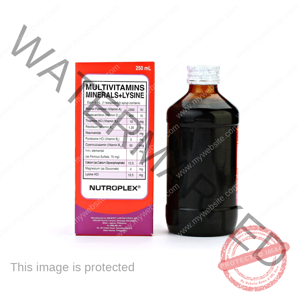 Children: 1 3 years – 2.5 mL (½ teaspoonful) 4 6 years – 2.5 5 mL (½ 1 teaspoonful) 7 12 years – 5 mL (1 teaspoonful) Ingredients: Each 5 mL (1 teaspoonful) syrup contains: Retinol Palmitate (Vitamin A) Cholecalciferol (Vitamin D3) Thiamine Hydrochloride (Vitamin B1) Riboflavin (Vitamin B2) Niacinamide Pyridoxine Hydrochloride (Vitamin B6) Cyanocobalamin (Vitamin B12) Iron, elemental Calcium (as Calcium Glycerophosphate) Magnesium (as Gluconate) Lysine Hydrochloride