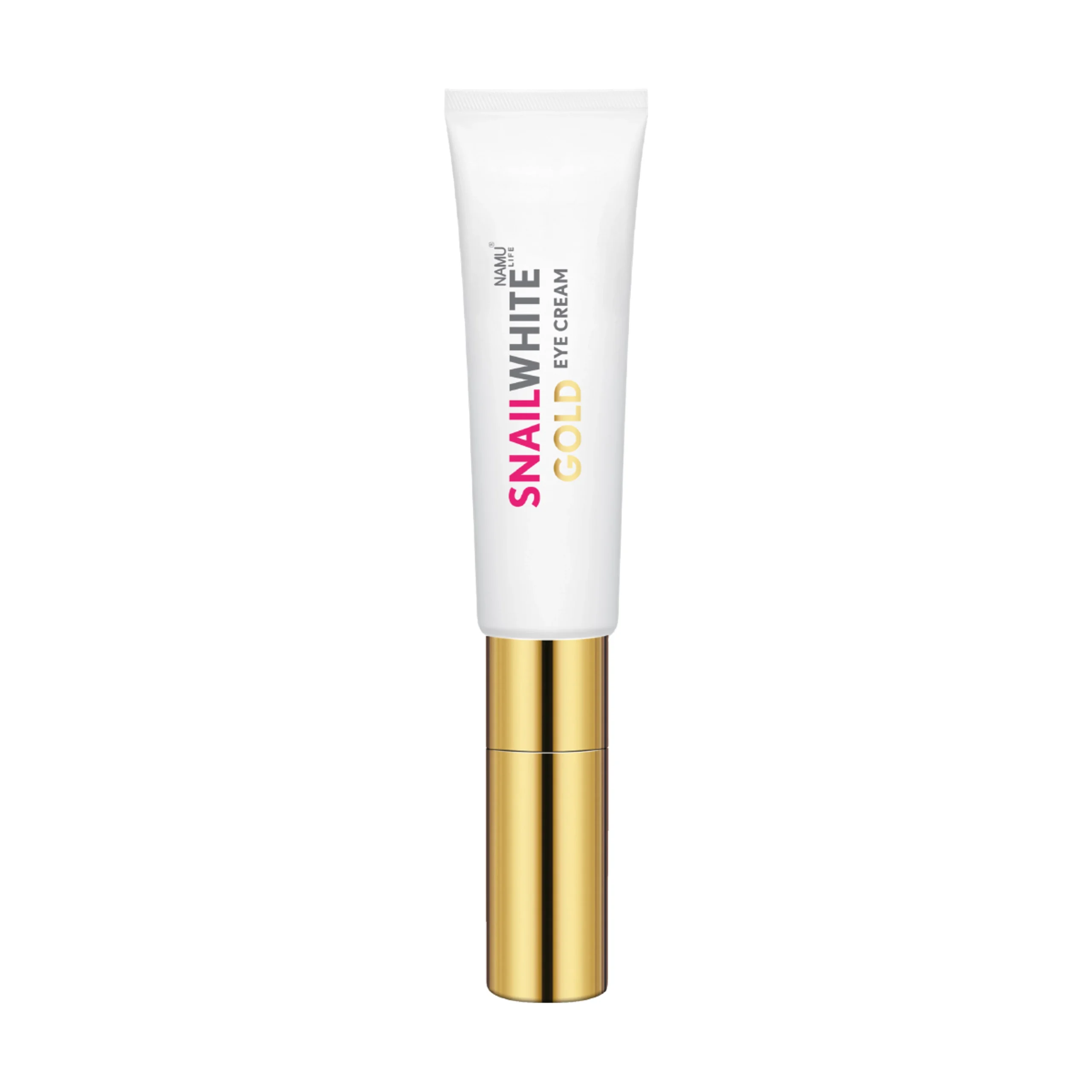 Our potent restorative eye cream is powered by SNAILWHITE Potion Advanced to visibly minimize fine lines, crow’s feet, & wrinkles, diminish the appearance of dark circles, and reduce the look of puffiness for age-defying results. This eye cream is infused with 24K Gold and Niacinamide to illuminate the eye area and fight free radicals. Hyaluronic Acid delivers deep hydration for smooth and plump skin. Pro-Retinol and Snail Mucin helps to visibly smoothen fine lines and wrinkles. Caffeine brightens and depuffs the under eye area to reveal youthful-looking radiance. Our eye cream comes with a built-in eye wand that gently massages to further brighten and depuff your eye area.