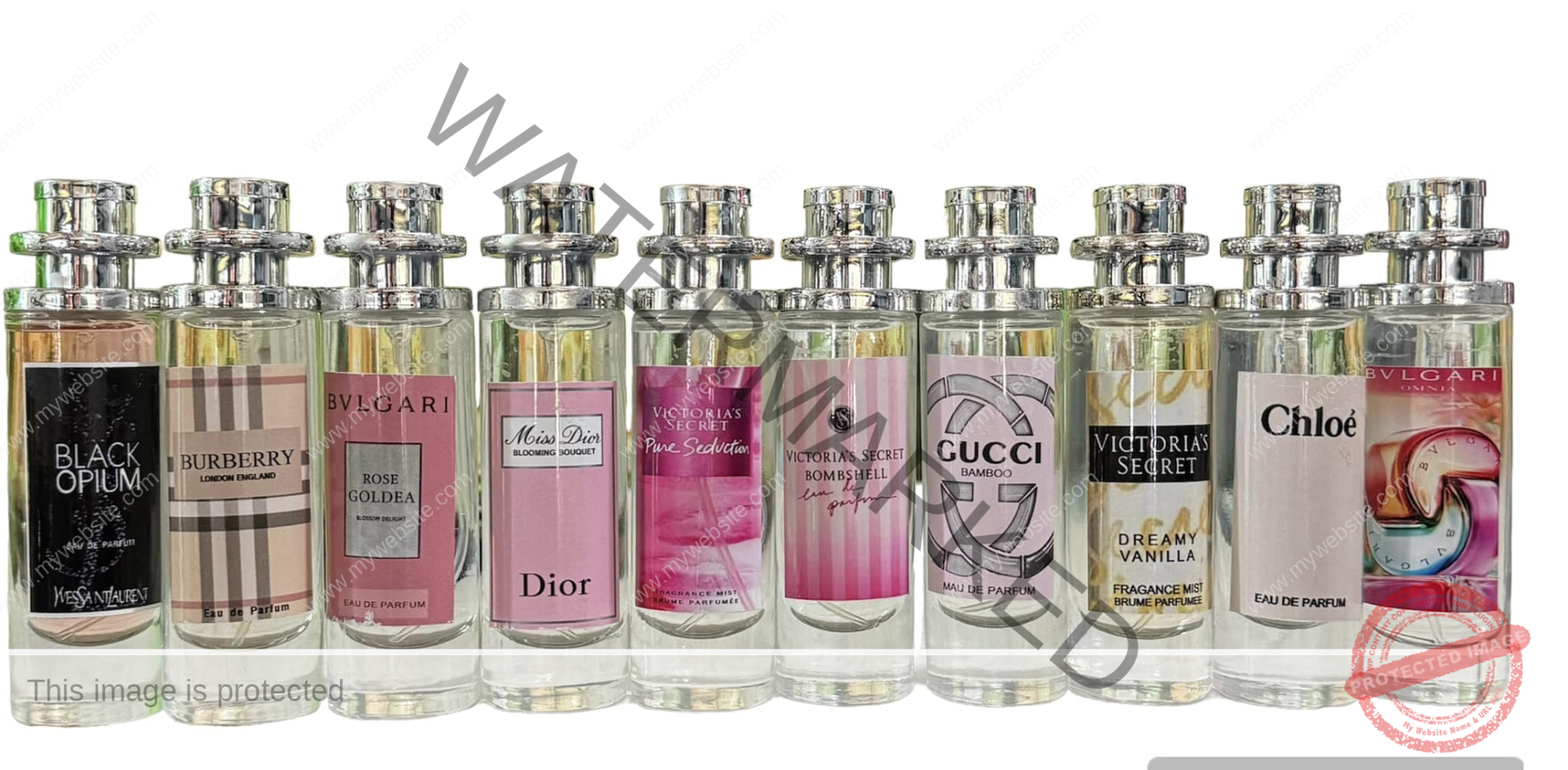 Gucci Bamboo, Bulberry, Victoria's Secret Bombshell, Victoria's Secret Dreamy Vanilla, Black Opium, Bulgari Rose Goldea, Victoria Secret Pure Seduction, Chloe, Bulgari Omnia, Miss Dior Blooming Bouquet